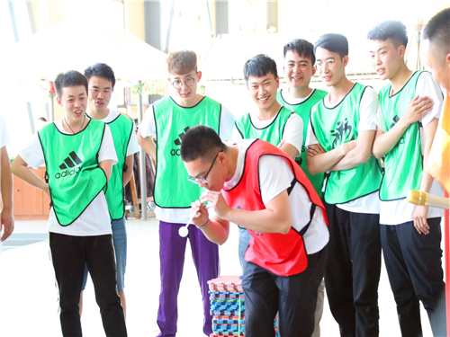 ??此次拓展訓練136人參加,分為9小隊進行比拼,比賽項目分別為:鼓動人生、前呼后擁、協力競走、車輪滾滾、闖四關、趣味拔河、生命力圈等活動,通過此次活動,讓員工在玩樂中享受快樂,在歡樂中得到收獲。