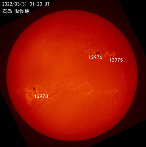 太陽表面目前存在三個較大的活動區,山東石島氣象臺拍攝
